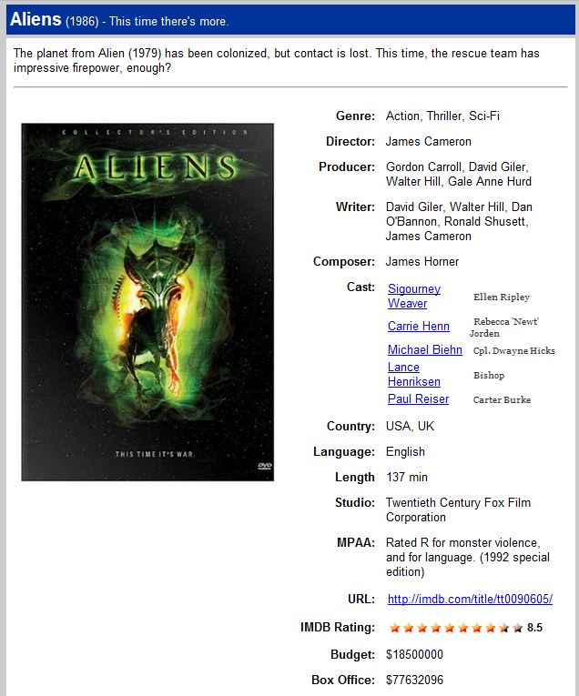 all my movies, amazon, cdcovers, collection, database, dvdempire, emdb, gcstart, griffith, imdb, med's movie manager, movie collector, movies, personal video database, test